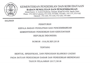 Juknis Penulisan Blangko Ijazah 2018 SD, SMP, SMA, SMK Tahun 2018